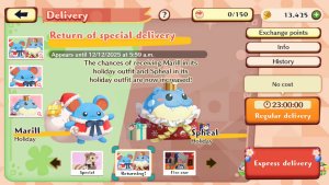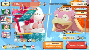 Delivery was introduced in February 2022 as a new feature that allows for you to send meals out to other Pokémon. This will take 22 hours for Pelipper to come back and deliver the items. The items you get are random but you can speed it up using Golden Acorns. 3,000 Acorns to speed up 1 dlivery or 30,000 acorns to speed up for 11 deliveries. When Pelipper gets back, you will receive items as payments for the delivery. These range from experience tarts to getting Pokémon. With the Pokémon, if you already have the Pokémon you will receive Cookies instead. |