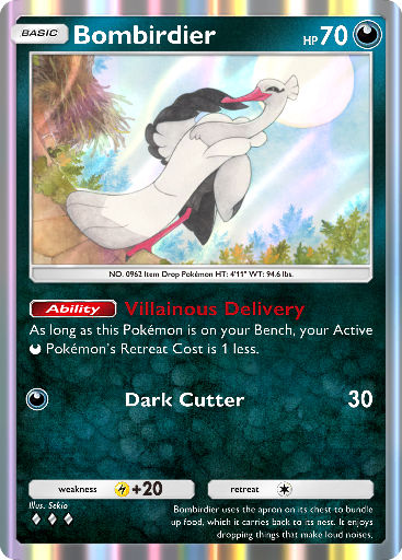 As long as this Pokémon is on your Bench, your Active Darkness Pokémon's Retreat Cost is 1 less