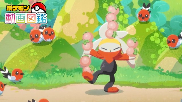 This episode features a Raboot that is collecting and playing with berries in the forest, but more berries keep joining due to Fletchling landing on the tree to watch.