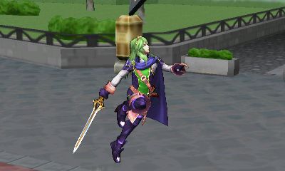 Lucina's neutral move is a charge move. It has Lucina grabs a sword and is able to charge it for a short time. When you have finished charging or decide to let go of the button, Lucina lunges forwards with the sword, slicing into the opponent.